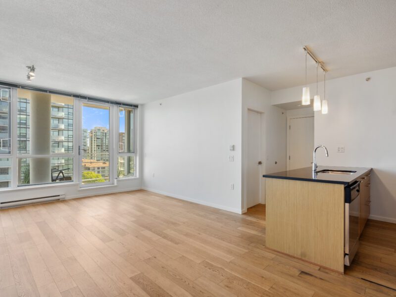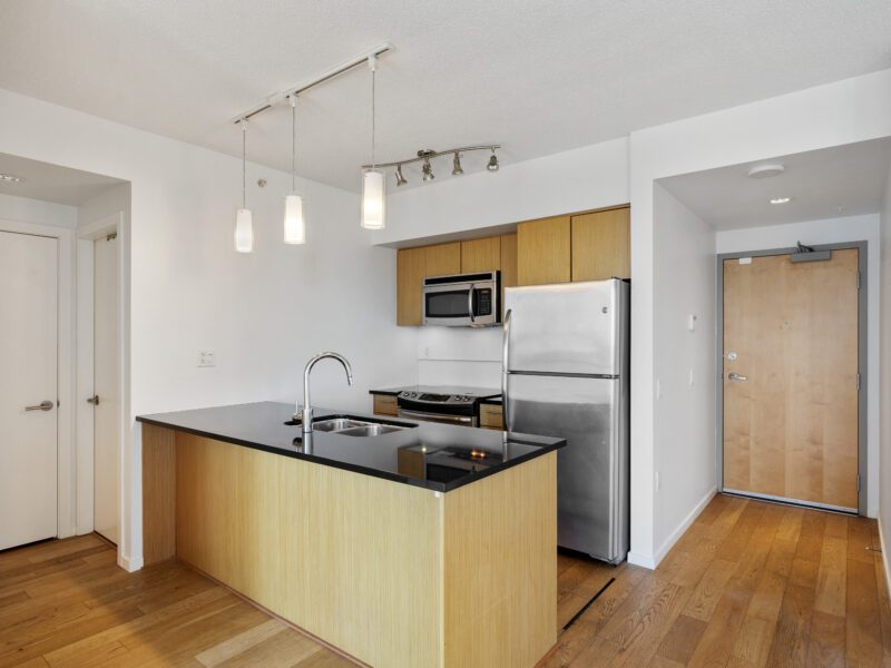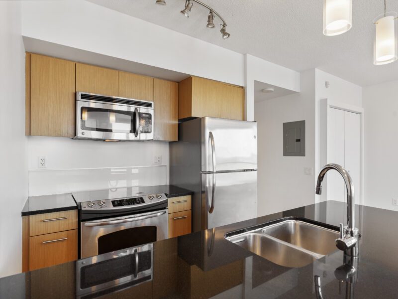 This perfectly centrally located two-bedroom condo in a steel and concrete building downtown offers and open concept floor plan with plenty of natural light and lovely patio overlooking the city from the 10th floor. The property has a modern look with excellent fit and finish, stainless steel kitchen appliances, including dishwasher and in suite laundry. Parking included.