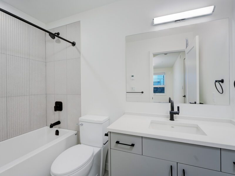 The primary bedroom includes a generous in-suite closet, and the three-piece bathrooms are equipped with heated floors and stylish matte black hardware.