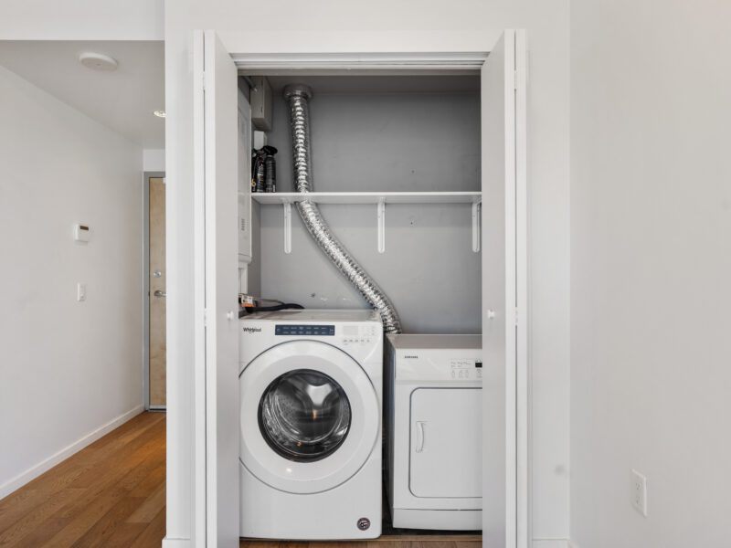 This perfect centrally located two-bedroom condo in a steel and concrete building downtown offers an open-concept floor plan with plenty of natural light and a lovely patio overlooking the city from the 10th floor. The unit has a modern look with stainless-steel kitchen appliances, including a dishwasher and in-suite laundry.