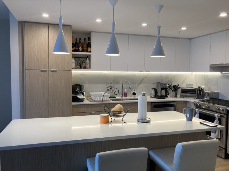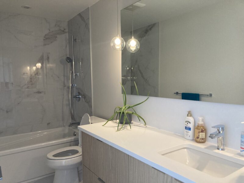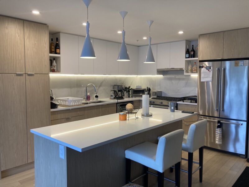 Feast your eyes on this stunning 2-bedroom, 2-bathroom suite on the 3rd floor of the Haro Shoreline building. North-facing windows offer great natural lighting, not to mention views of the ocean. This high-end unit features a large modern kitchen with an over-sized island countertop, to the ceiling cabinetry and stainless-steel appliances with a gas cook top.