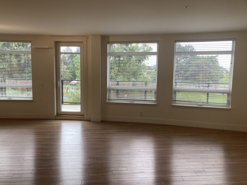 When you enter this quiet unit at the end of the hall you are welcomed with a private entryway leading to an oversized open-concept living room, dining room and kitchen. Enjoy brand new hard wood flooring throughout, large windows on every wall to encourage lots of natural light and a corner kitchen with island and granite countertops. Best of all, an expansive balcony that spans the length of the unit.