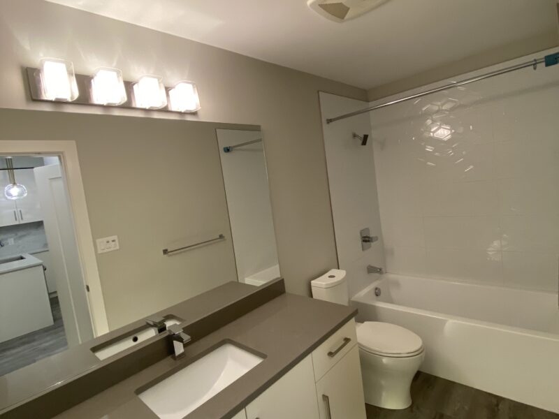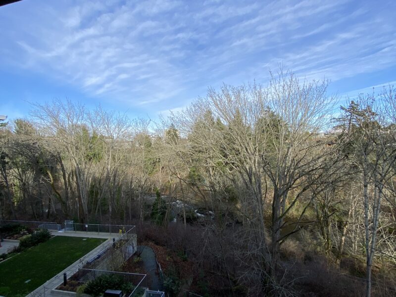 This 625-square-foot one-bedroom has a lovely a treed outlook from the quiet side of the building toward the river. Its southwest-facing patio has room for outdoor cooking and the interior has a modern open floorplan and a small bonus interior storage room. Quartz counters, modern stainless appliances and fixtures, and in-suite laundry set this property apart from other rental properties.